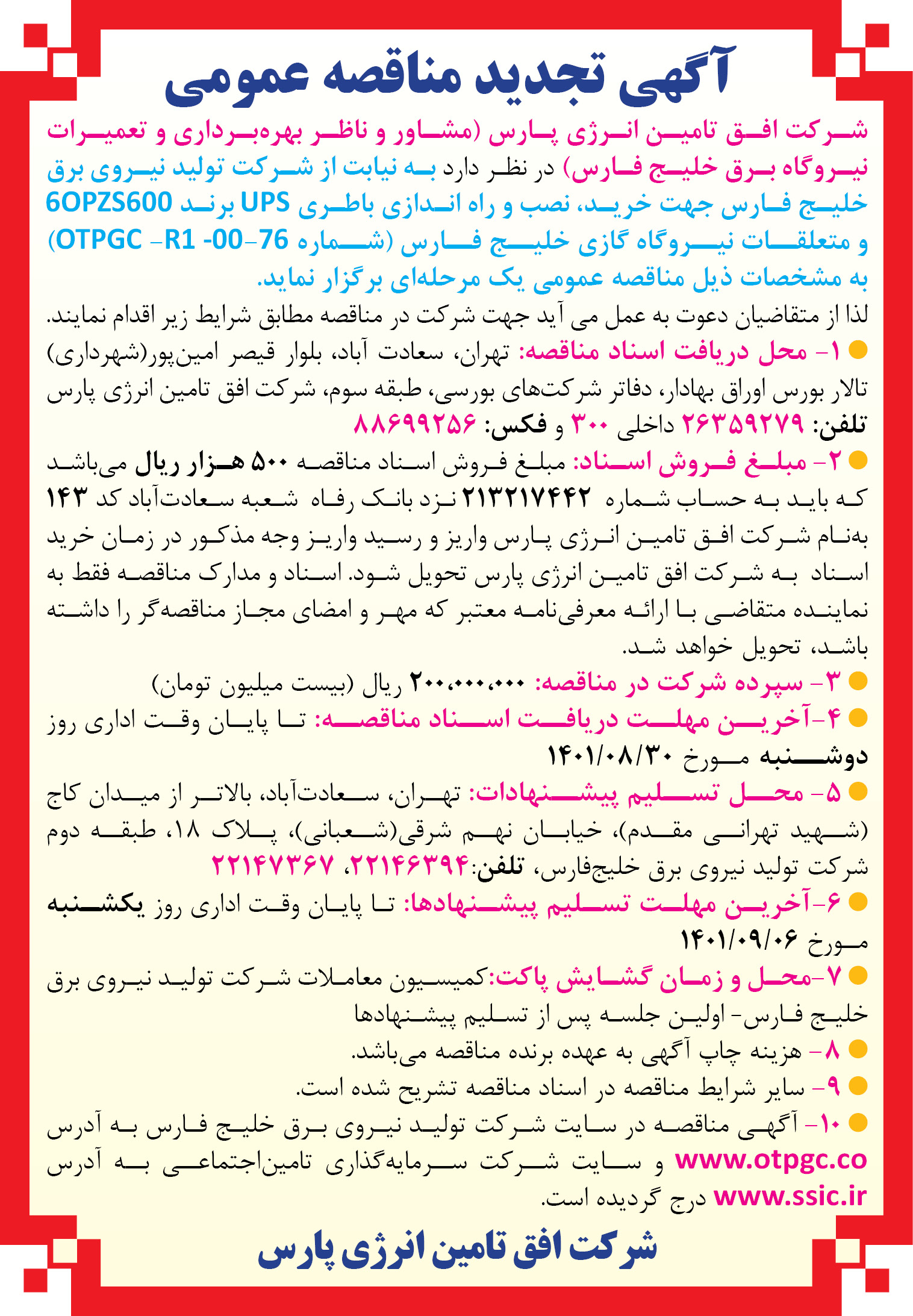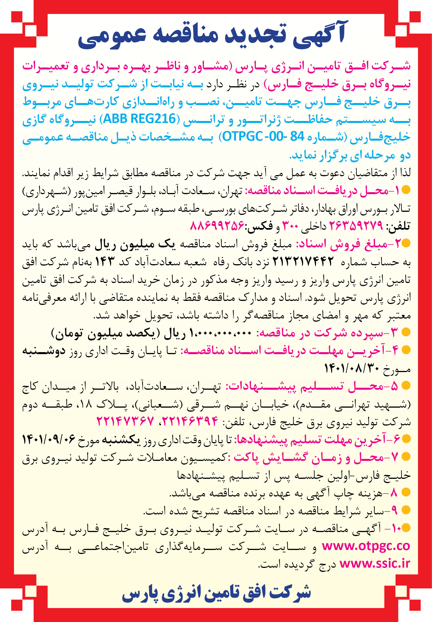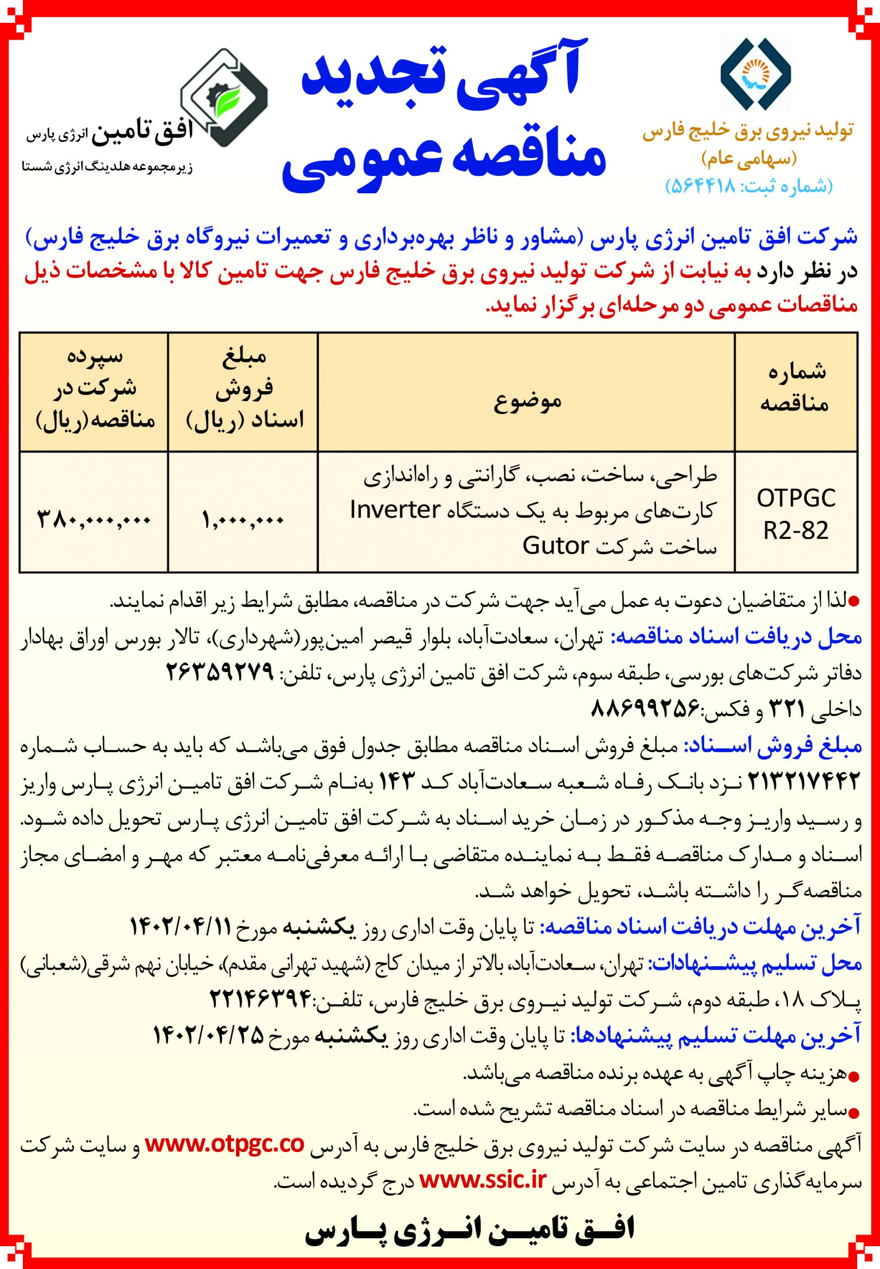 شماره مزایده: OTPGC-M-R1-01