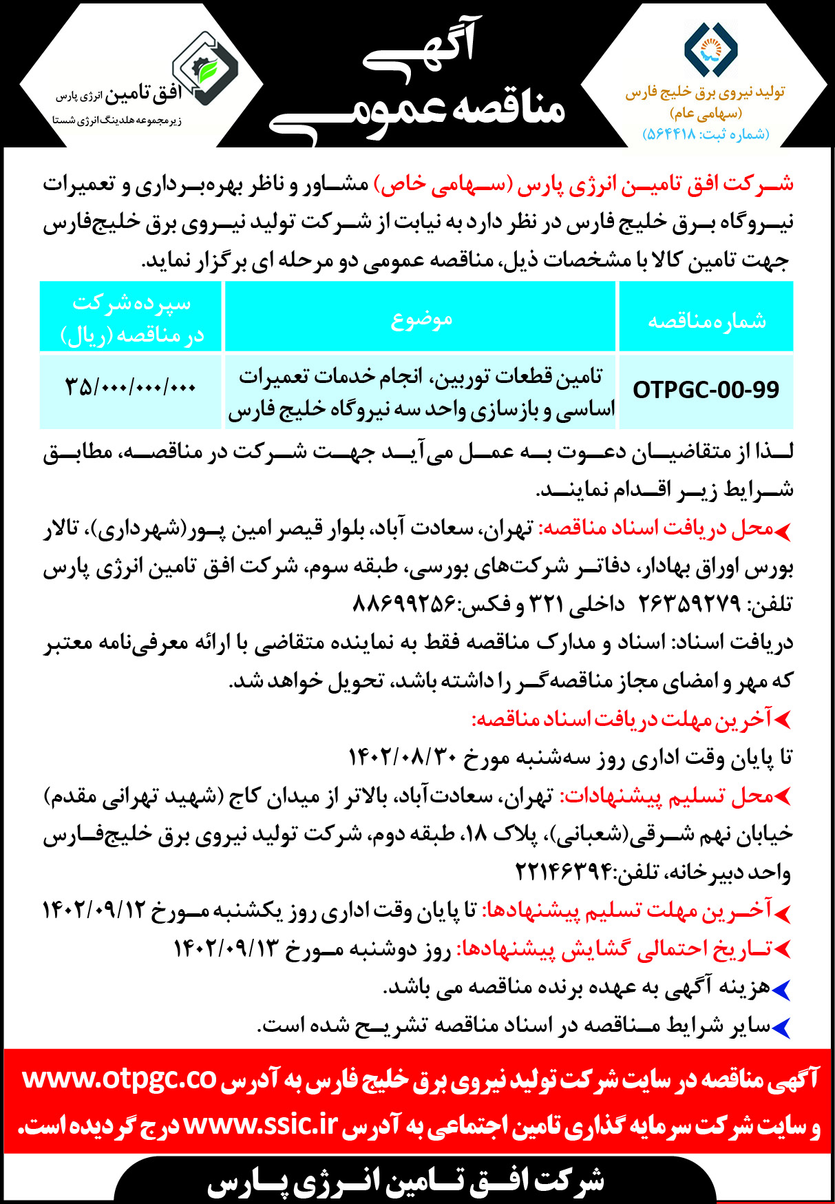 شماره مناقصه: OTPGC-00-35