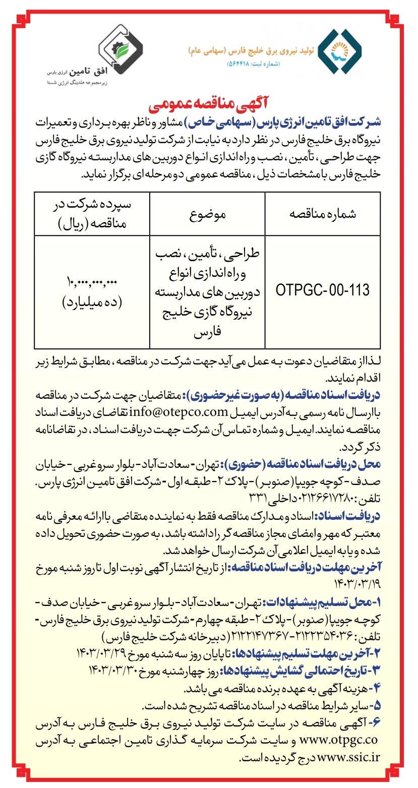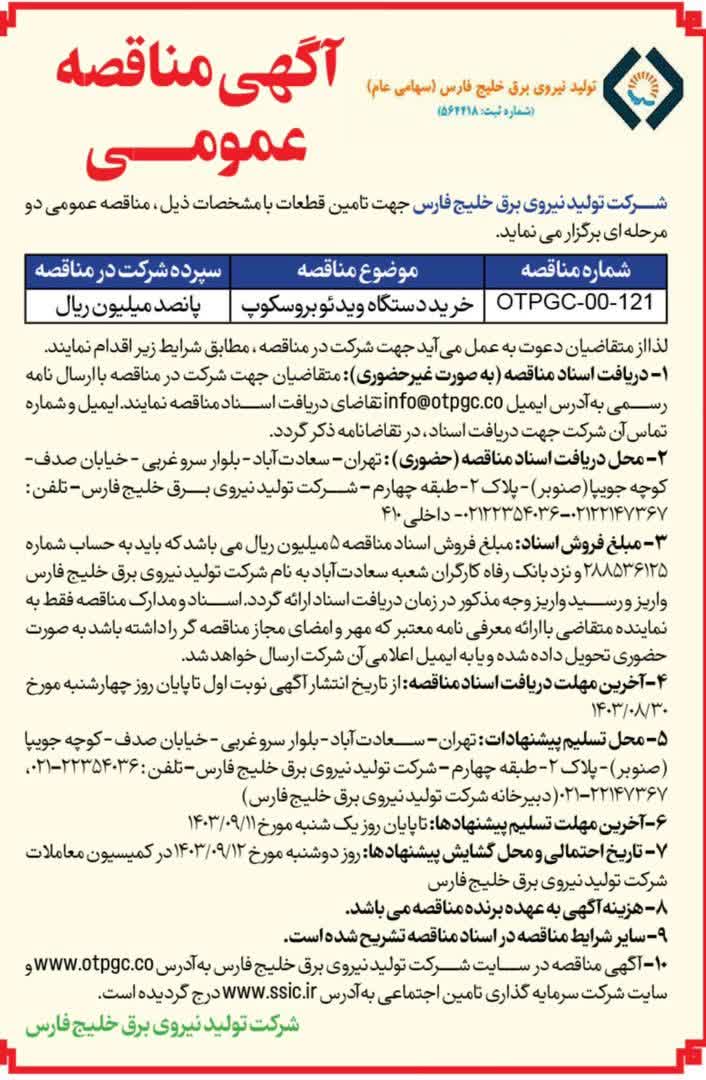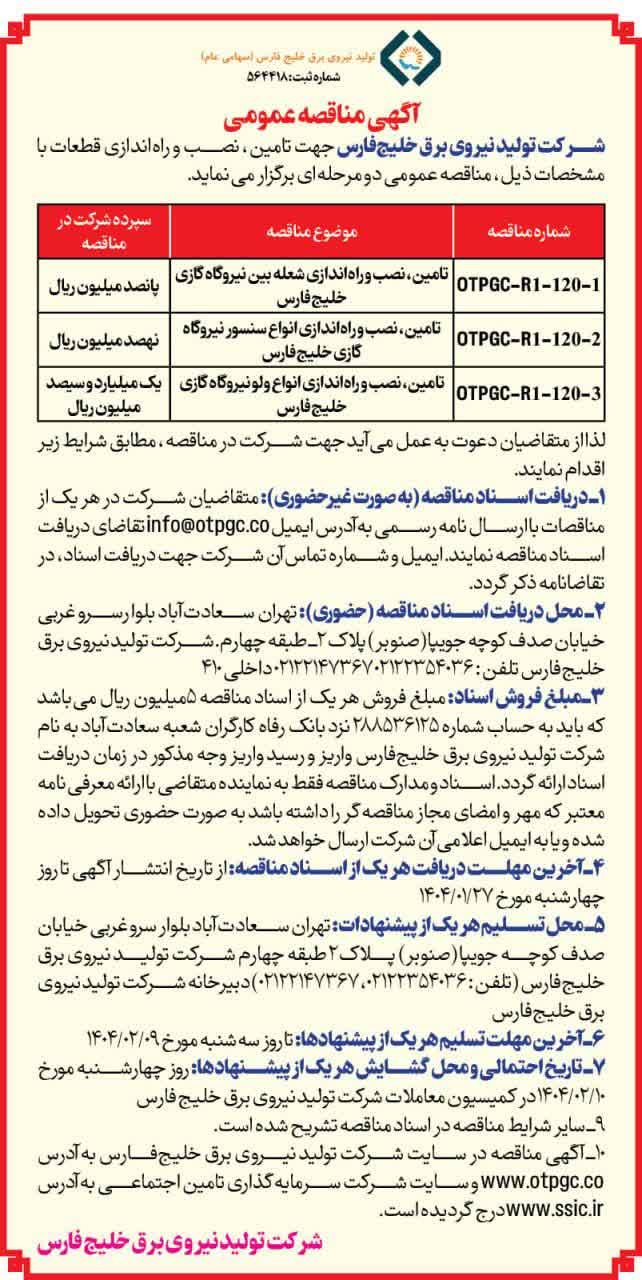 شماره مناقصه: OTPGC-R2-120-3