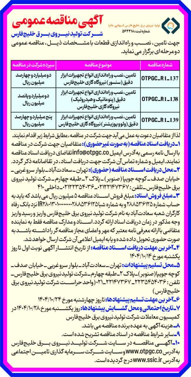 شماره مناقصه: OTPGC-R1-139